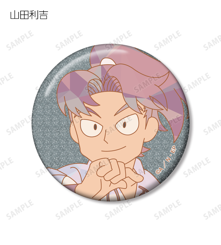 猪名寺乱太郎、摂津のきり丸、平滝夜叉丸、綾部喜八郎、久々知兵助、尾浜勘右衛門、鉢屋三郎、潮江文次郎、中在家長次、七松小平太、山田利吉のイラストにプリズムを散りばめた模様を組み合わせ、グリッター加工を施した缶バッジに仕上げました。 ※2025年10月8日までに