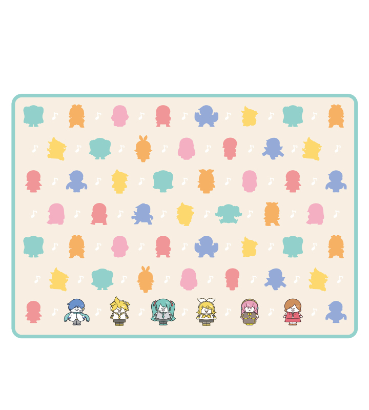 STUDY優作先生が描き下ろした初音ミク、鏡音リン、鏡音レン、巡音ルカ、KAITO、MEIKOと、キャラクターからイメージしたカラーリングのシルエットをレイアウトしたデザインに仕上げました。