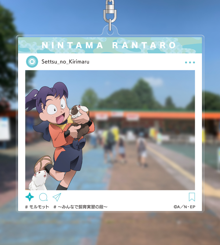 『忍たま乱太郎』×「東武動物公園」のコラボレーションアイテム「描き下ろし 摂津のきり丸 みんなで飼育実習の段ver. SNS風BIGアクリルキーホルダー」の登場です。