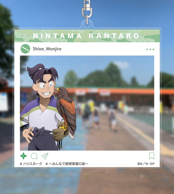 『忍たま乱太郎』×「東武動物公園」のコラボレーションアイテム「描き下ろし 潮江文次郎 みんなで飼育実習の段ver. SNS風BIGアクリルキーホルダー」の登場です。