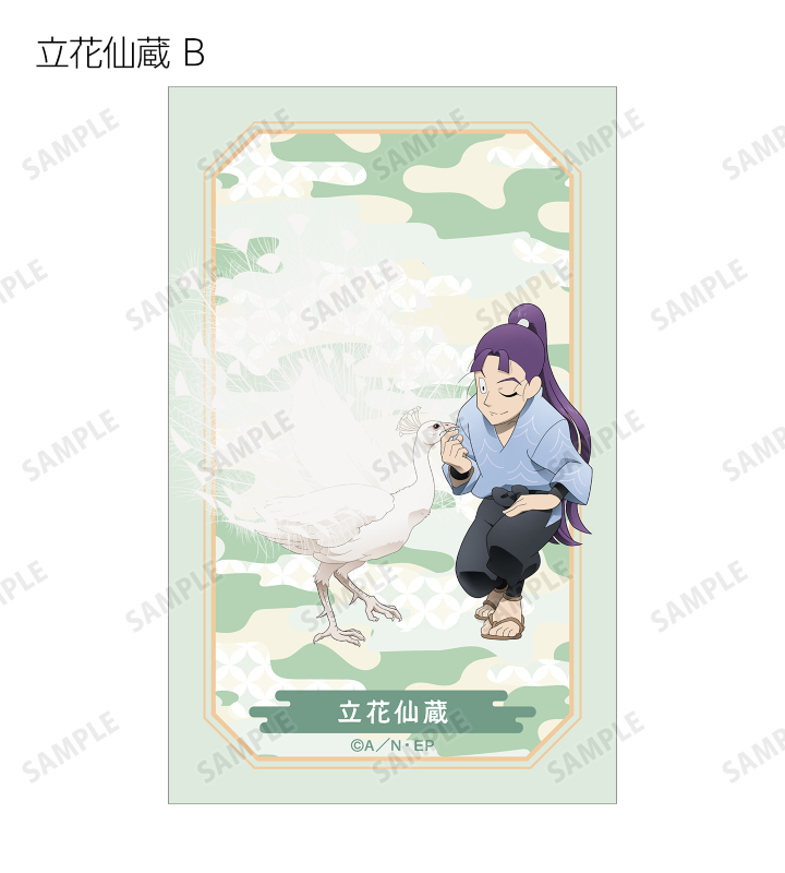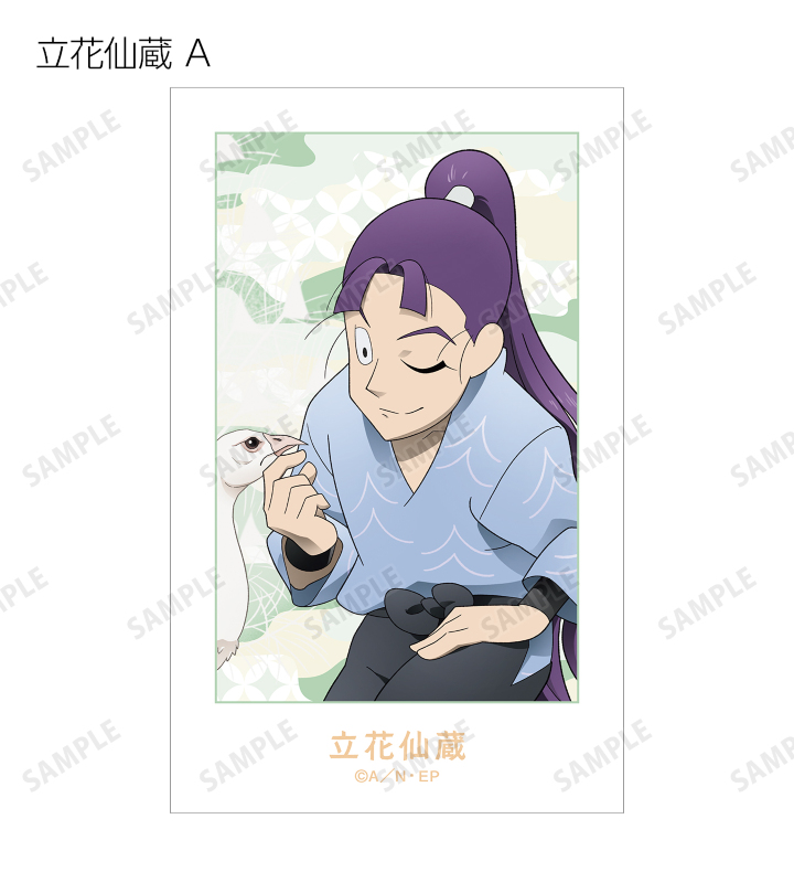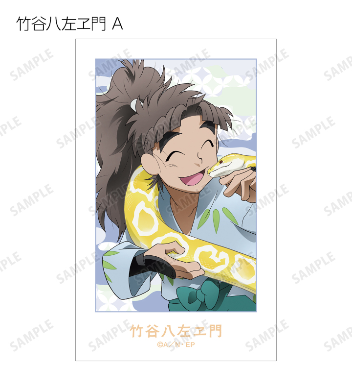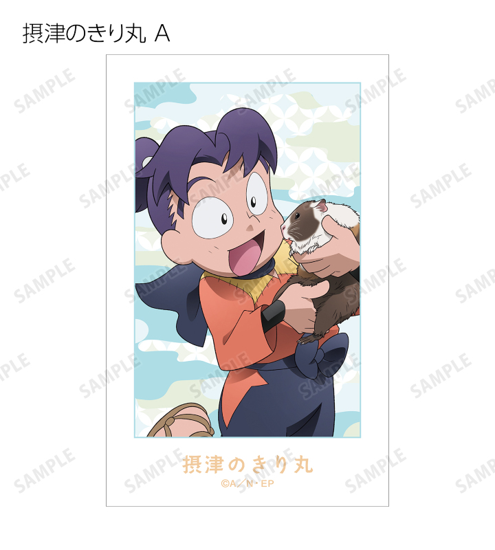 猪名寺乱太郎、摂津のきり丸、不破雷蔵、鉢屋三郎、竹谷八左ヱ門、立花仙蔵、善法寺伊作、食満留三郎の描き下ろしイラストをイラストカードに仕上げました。