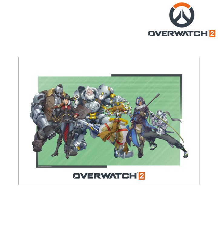 『オーバーウォッチ 2』×「メレ」のコラボレーションアイテム「メレさんイラスト 集合 A3マット加工ポスター ver.A」の登場です。