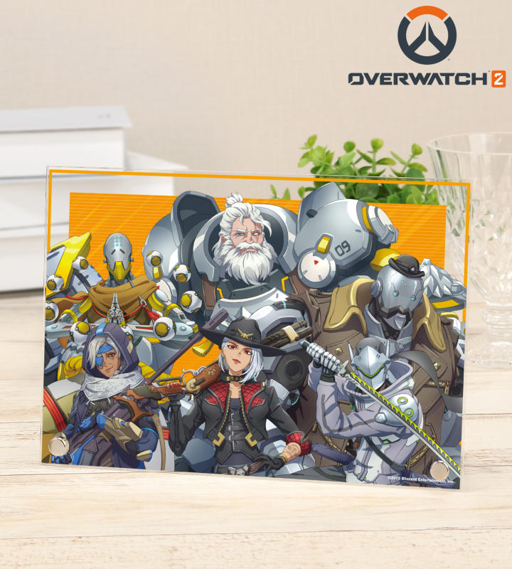 『オーバーウォッチ 2』×「メレ」のコラボレーションアイテム「メレさんイラスト 集合 A5アクリルパネル ver.A」の登場です。