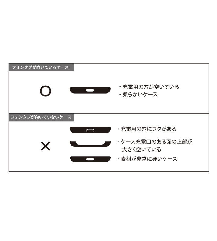 スマホケースとスマホ本体の間に挟んで使用するフォンタブです。