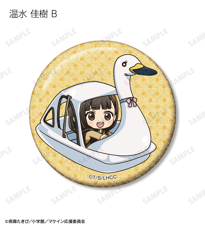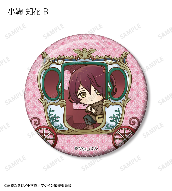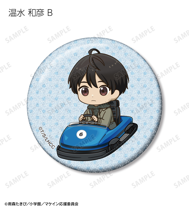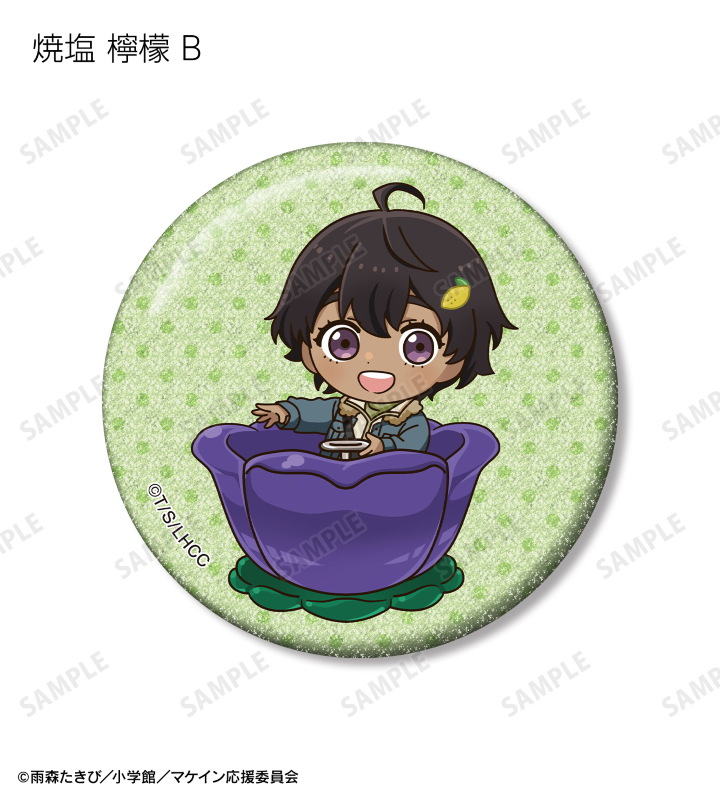 温水 和彦、八奈見 杏菜、焼塩 檸檬、小鞠 知花、温水 佳樹、月之木 古都、姫宮 華恋、朝雲 千早、志喜屋 夢子、放虎原 ひばり、馬剃 天愛星の描き起こしちびキャライラストをメインにデザインし、グリッター加工を施した缶バッジに仕上げました。 ※2026年01月28日までに