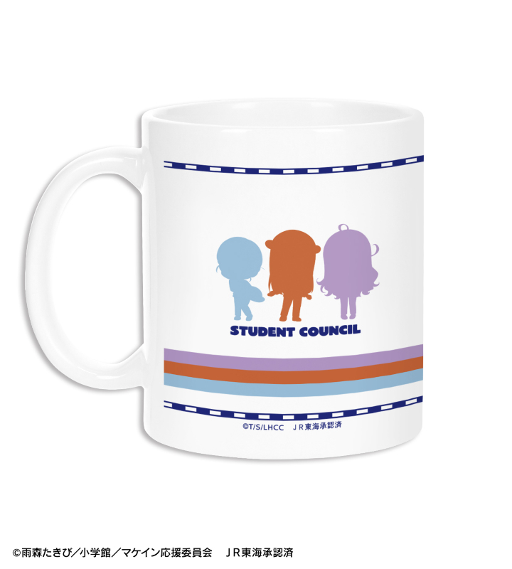 志喜屋 夢子、放虎原 ひばり、馬剃 天愛星の描き起こしちびキャライラストをメインにデザインし、マグカップに仕上げました。