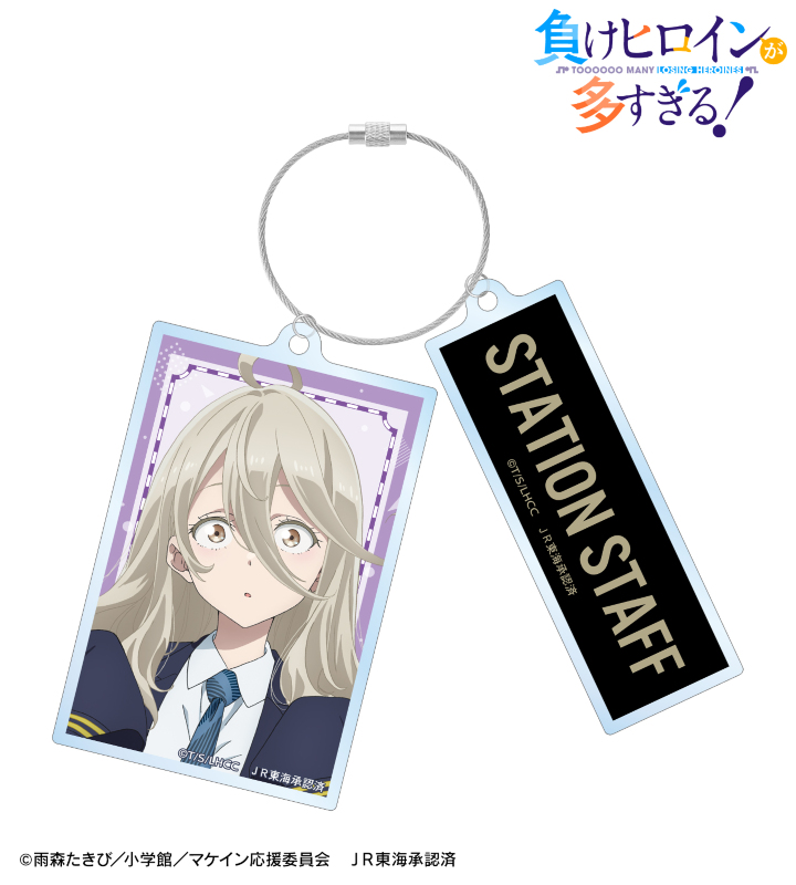 TVアニメ『負けヒロインが多すぎる!』×「推し旅/JR東海」のコラボレーションアイテム「描き下ろし 志喜屋 夢子 駅員ver. 第2弾 2連ワイヤーBIGアクリルキーホルダー」の登場です。