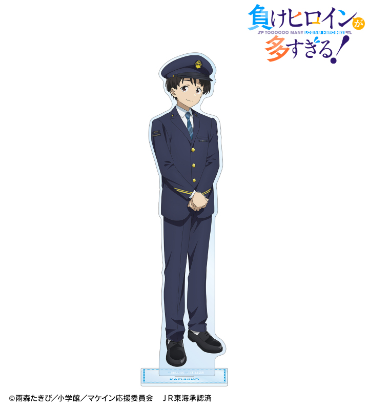 TVアニメ『負けヒロインが多すぎる!』×「推し旅/JR東海」のコラボレーションアイテム「描き下ろし 温水 和彦 駅員ver. 第2弾 特大アクリルスタンド」の登場です。