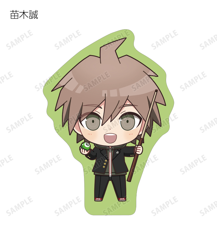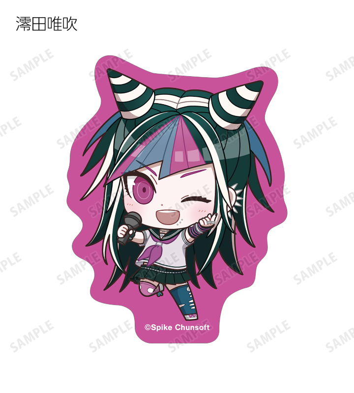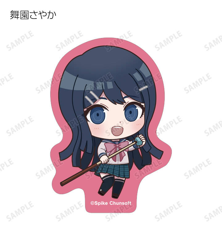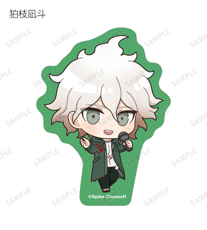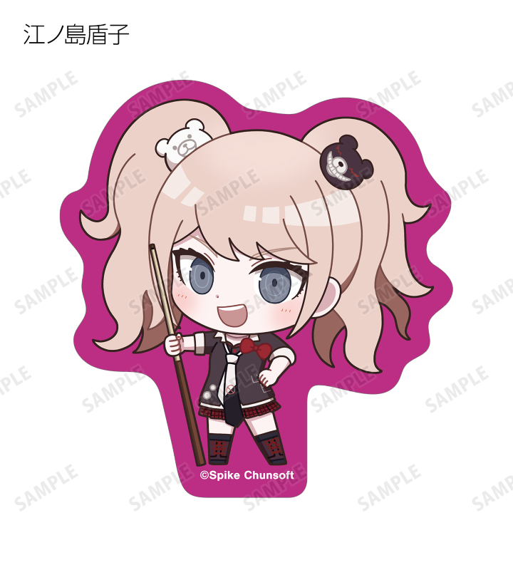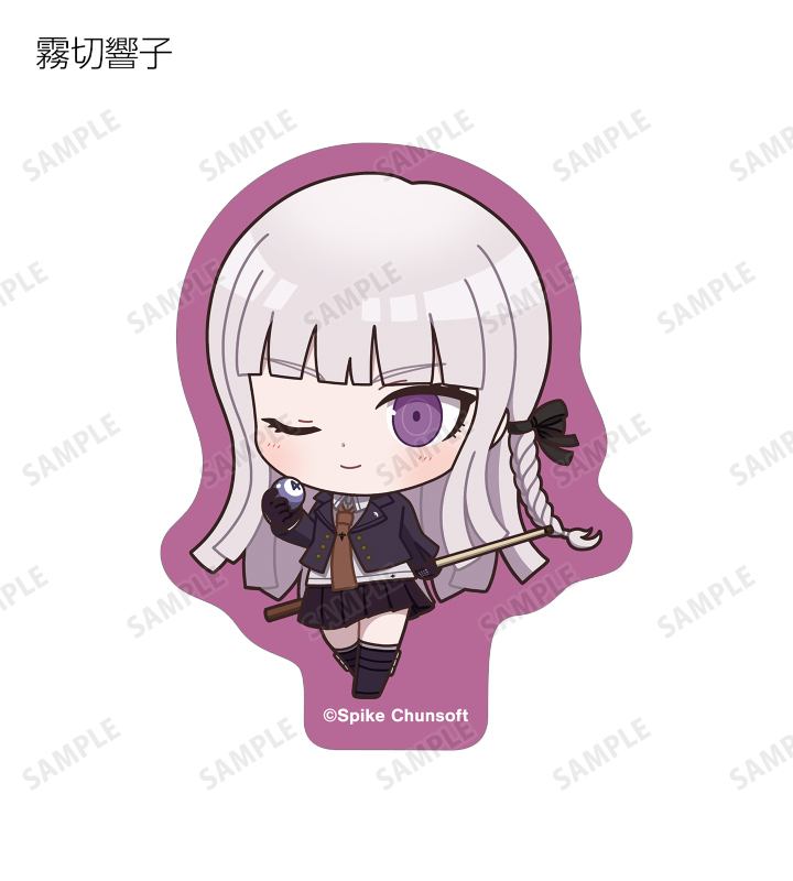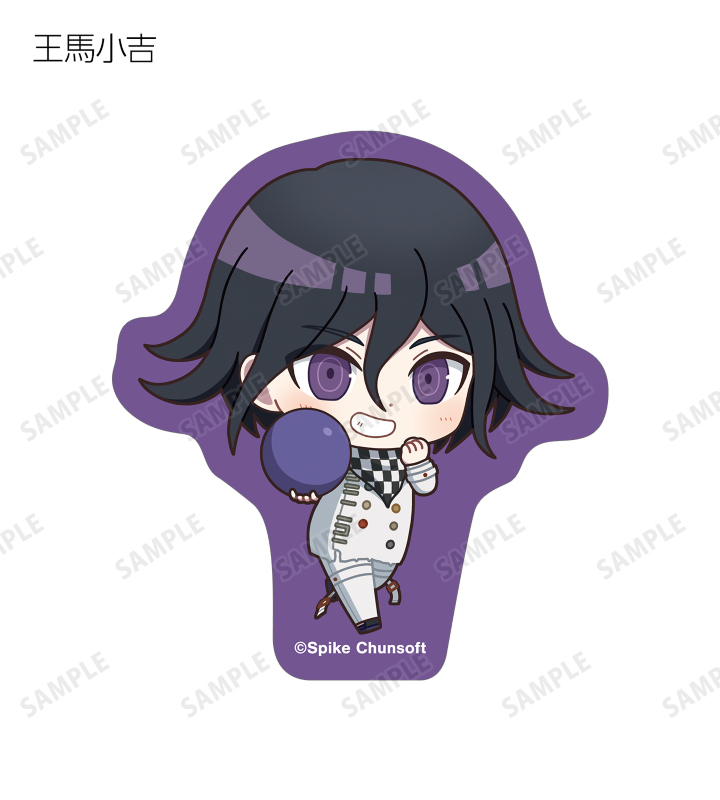 苗木誠、舞園さやか、霧切響子、江ノ島盾子、日向創、狛枝凪斗、七海千秋、澪田唯吹、赤松楓、王馬小吉、キーボ、最原終一の描き起こしちびキャライラストをメインにデザインし、ダイカットのステッカーに仕上げました。