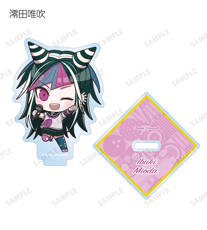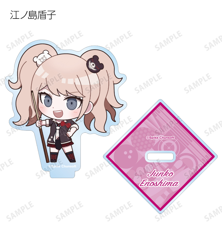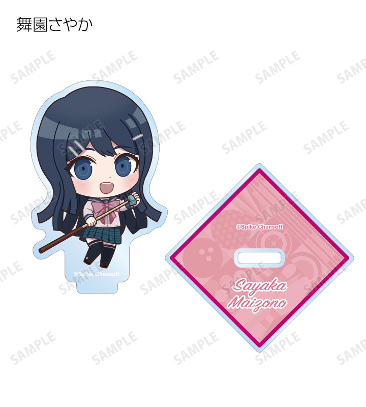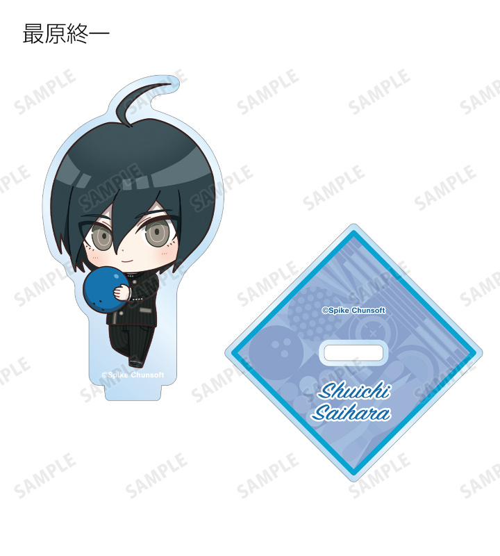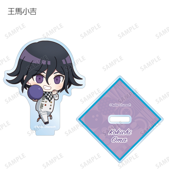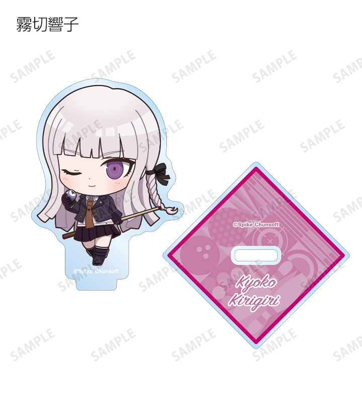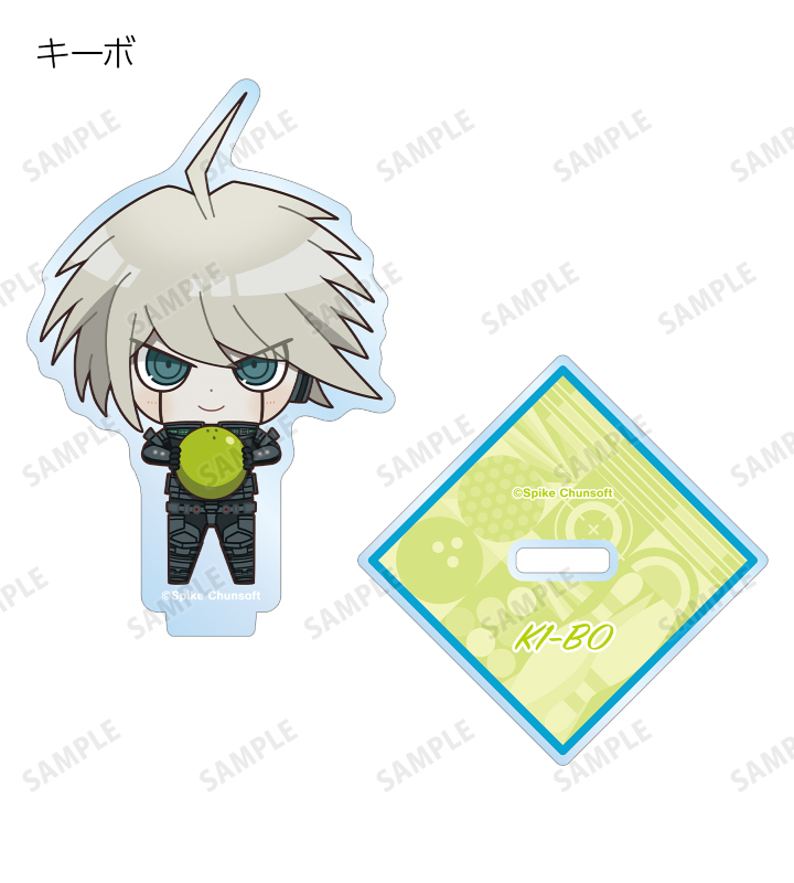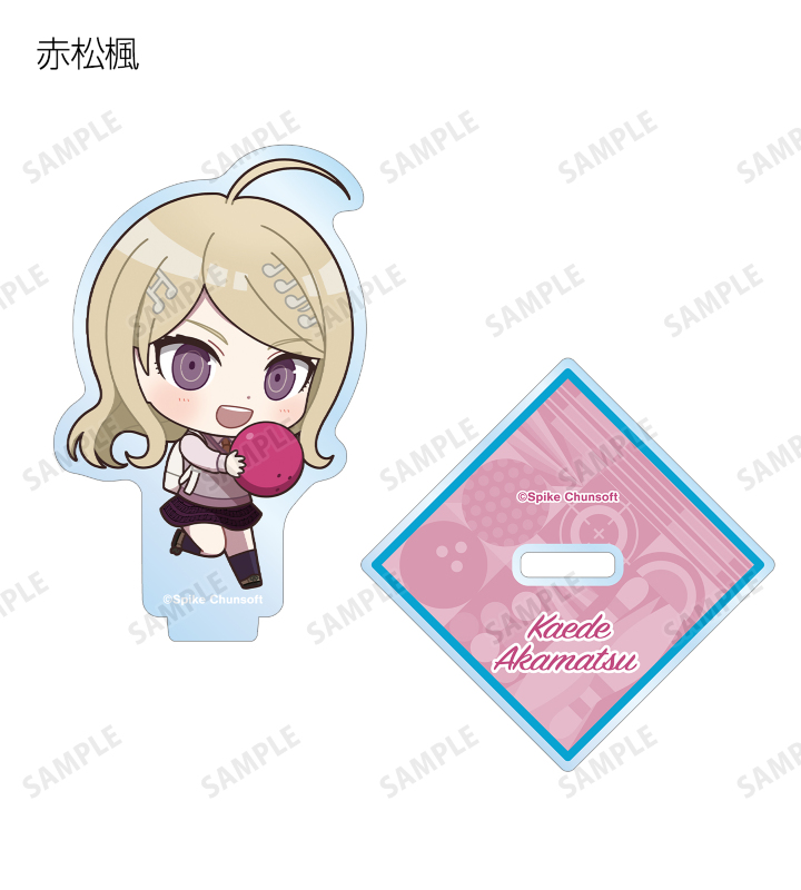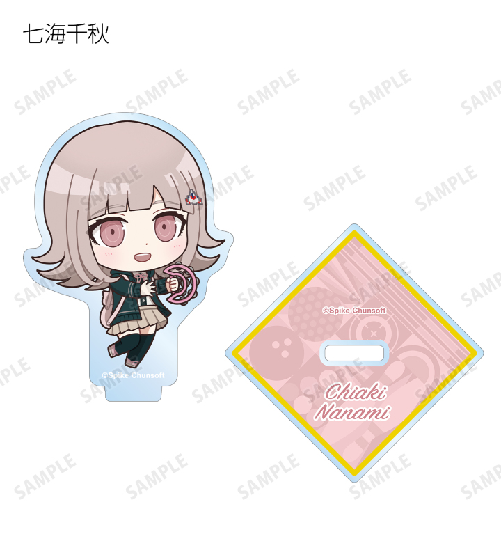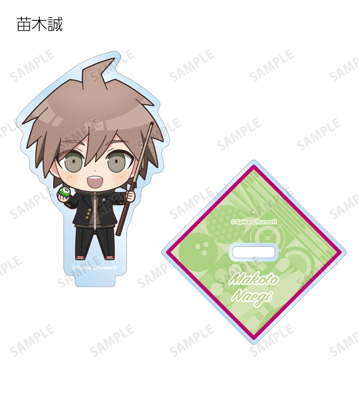 苗木誠、舞園さやか、霧切響子、江ノ島盾子、日向創、狛枝凪斗、七海千秋、澪田唯吹、赤松楓、王馬小吉、キーボ、最原終一の描き起こしちびキャライラストをメインにデザインし、アクリルスタンドに仕上げました。