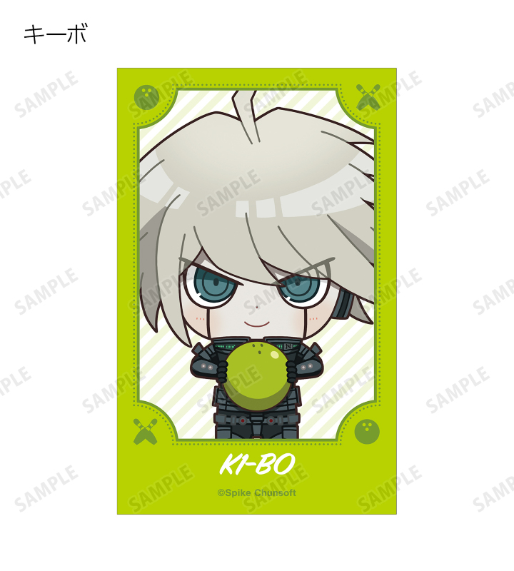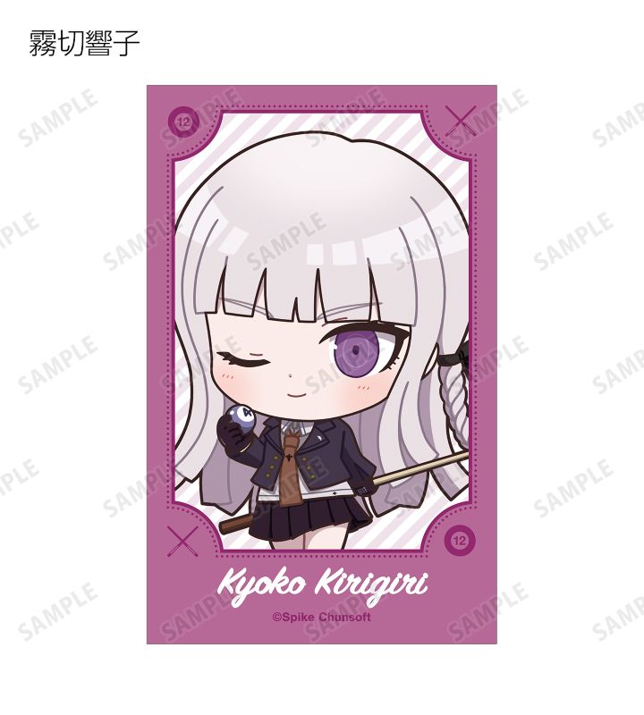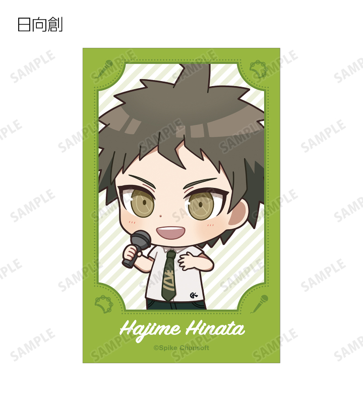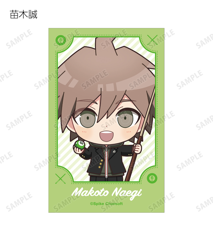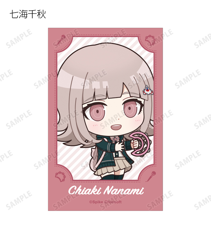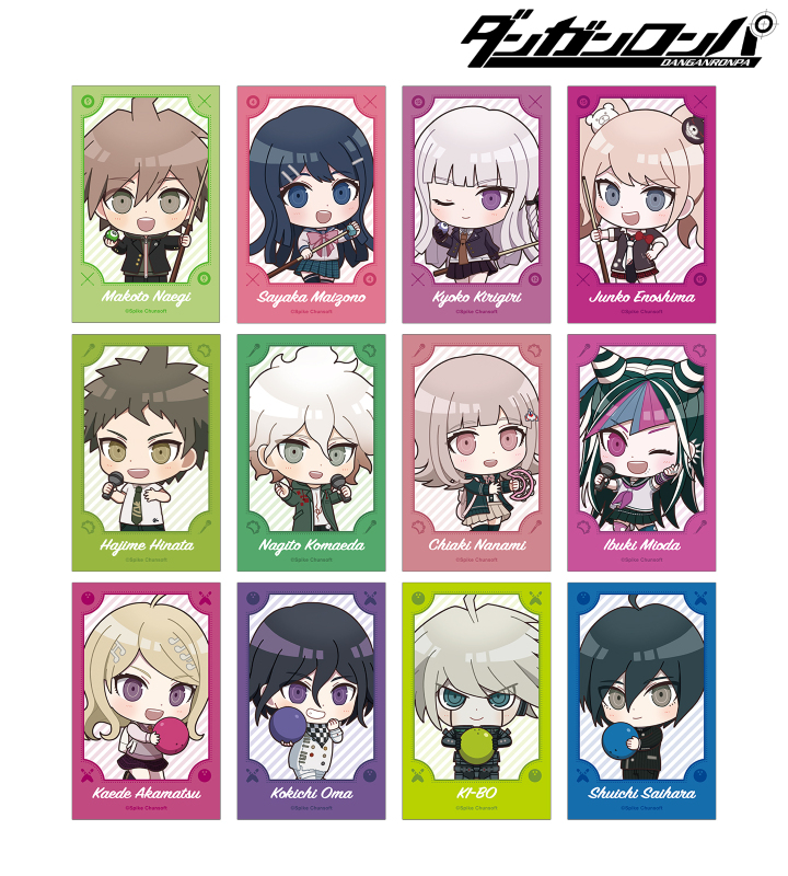 苗木誠、舞園さやか、霧切響子、江ノ島盾子、日向創、狛枝凪斗、七海千秋、澪田唯吹、赤松楓、王馬小吉、キーボ、最原終一の描き起こしちびキャライラストをメインにデザインし、イラストカードに仕上げました。
