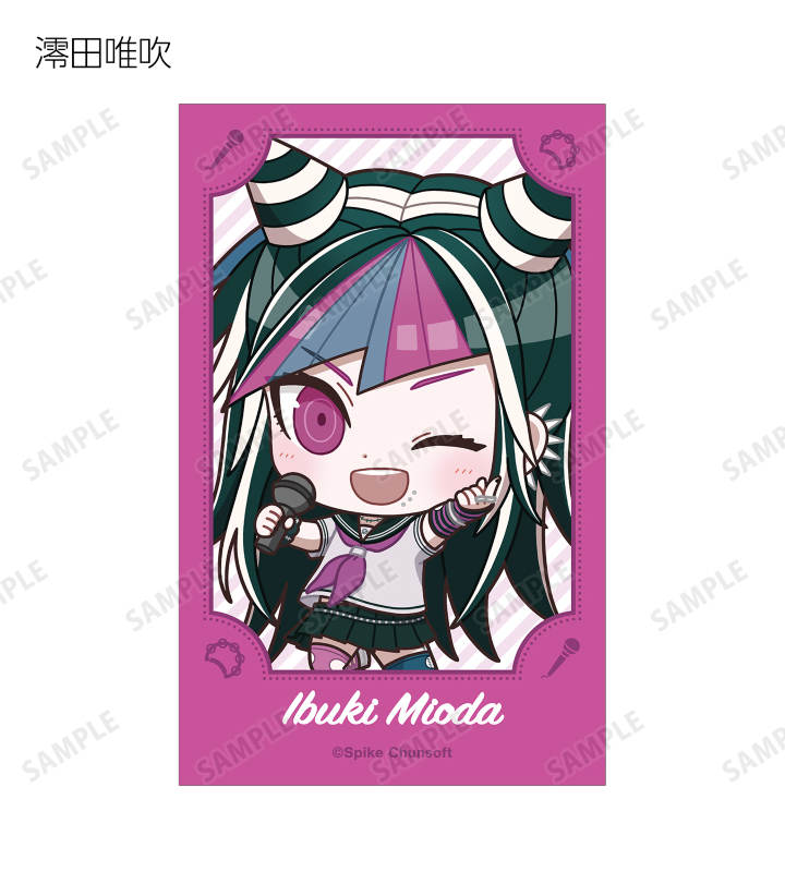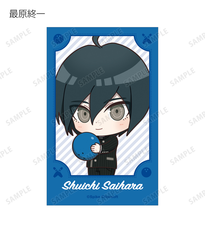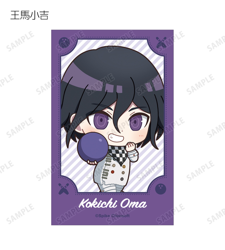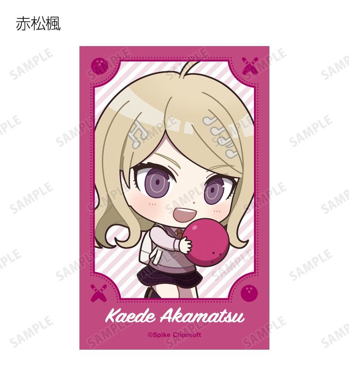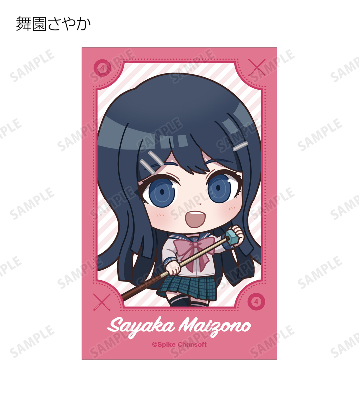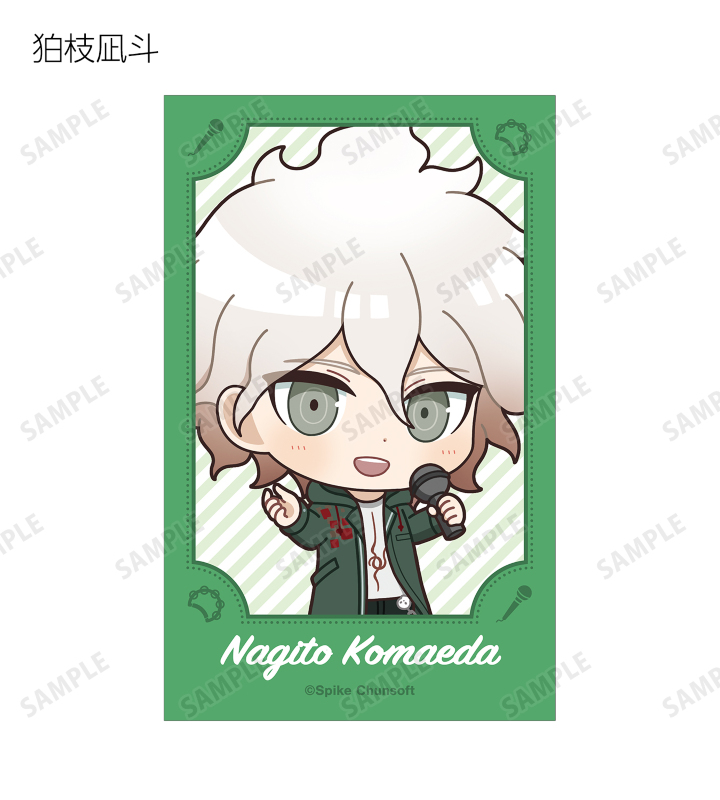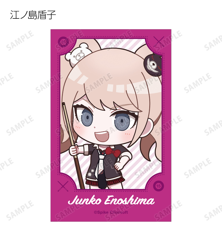 苗木誠、舞園さやか、霧切響子、江ノ島盾子、日向創、狛枝凪斗、七海千秋、澪田唯吹、赤松楓、王馬小吉、キーボ、最原終一の描き起こしちびキャライラストをメインにデザインし、イラストカードに仕上げました。