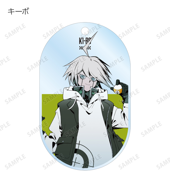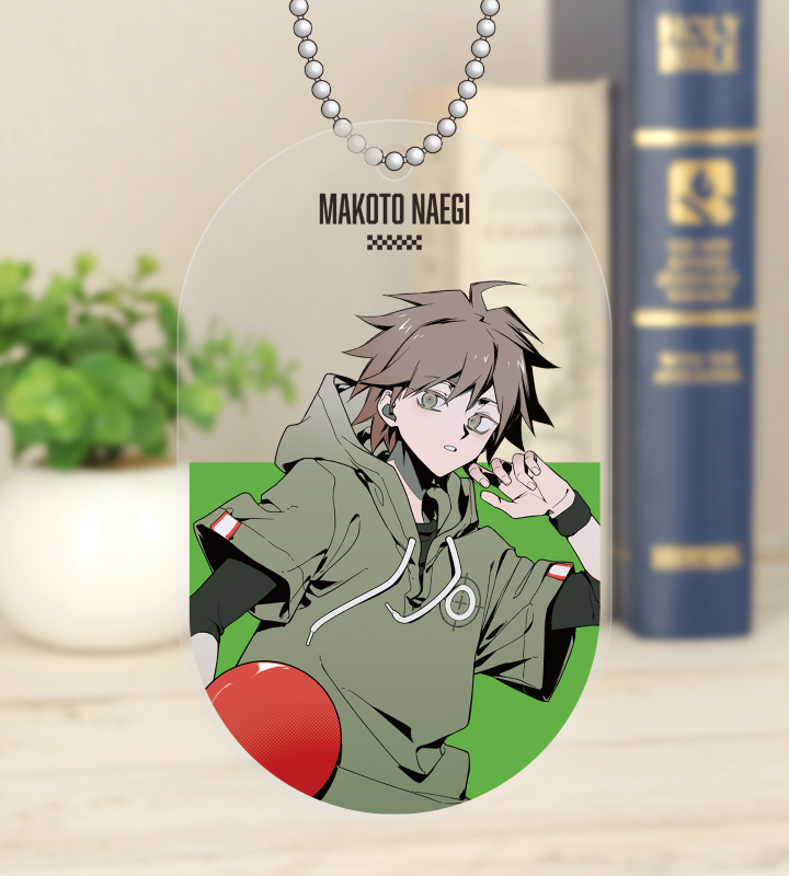 しづさん描き下ろしイラストの苗木誠、舞園さやか、霧切響子、江ノ島盾子、日向創、狛枝凪斗、七海千秋、澪田唯吹、赤松楓、王馬小吉、キーボ、最原終一をアクリルキーホルダーに仕上げました。