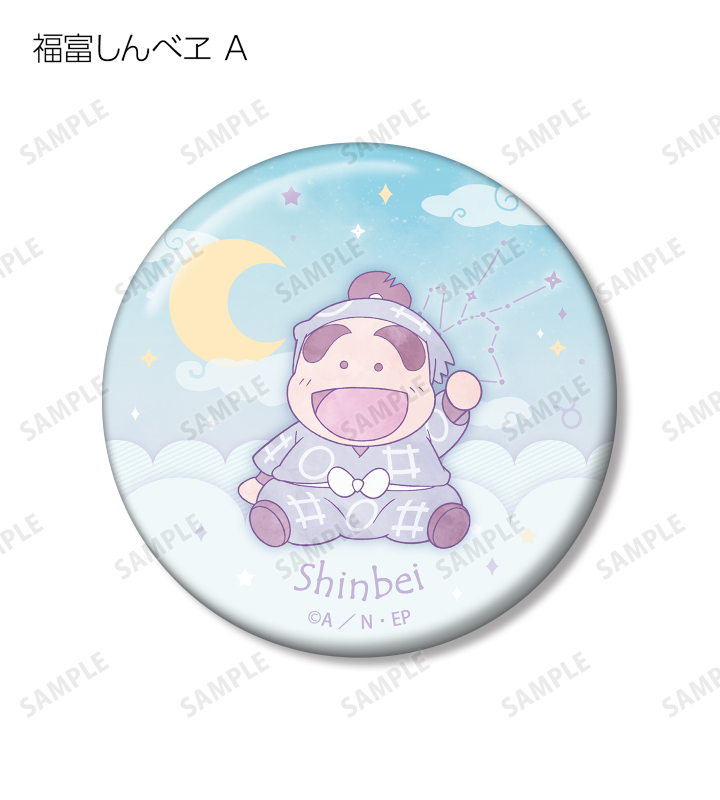 福富しんべヱのちびキャライラストと星座を組み合わせて、缶バッジ2個セットに仕上げました。
