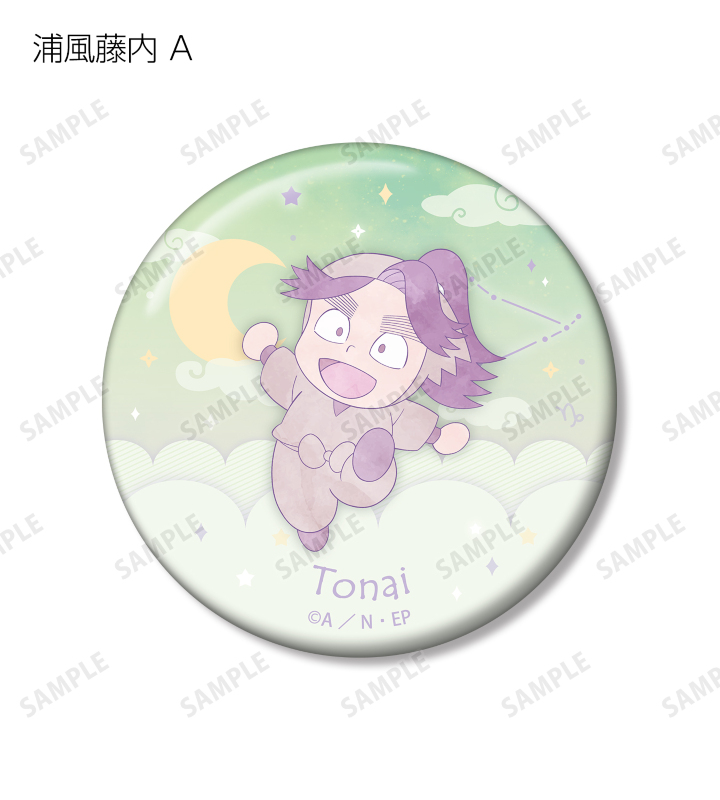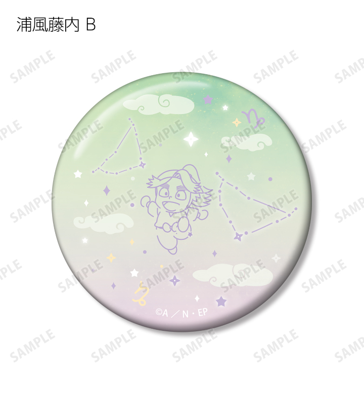 浦風藤内のちびキャライラストと星座を組み合わせて、缶バッジ2個セットに仕上げました。