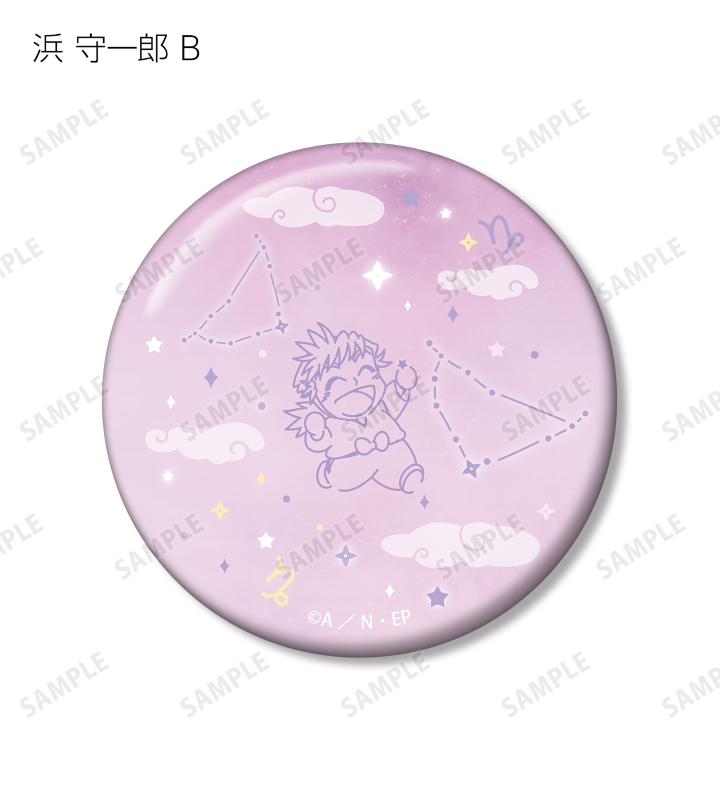 浜 守一郎のちびキャライラストと星座を組み合わせて、缶バッジ2個セットに仕上げました。
