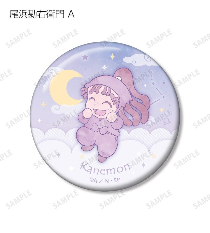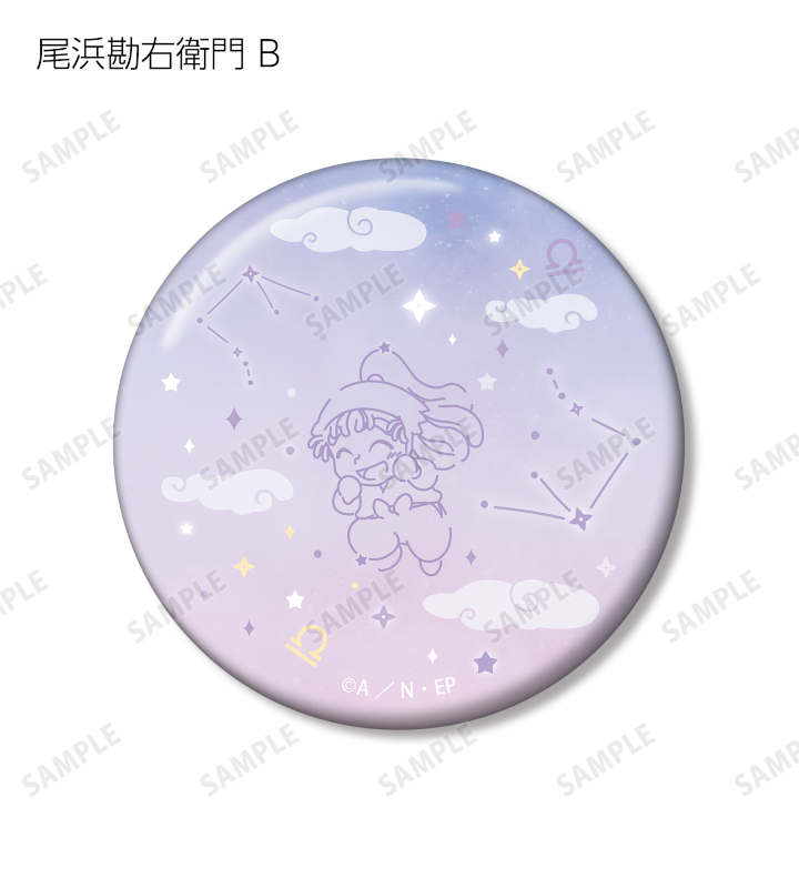 尾浜勘右衛門のちびキャライラストと星座を組み合わせて、缶バッジ2個セットに仕上げました。