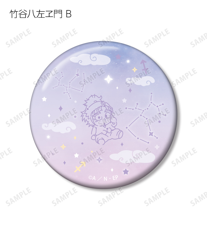 竹谷八左ヱ門のちびキャライラストと星座を組み合わせて、缶バッジ2個セットに仕上げました。