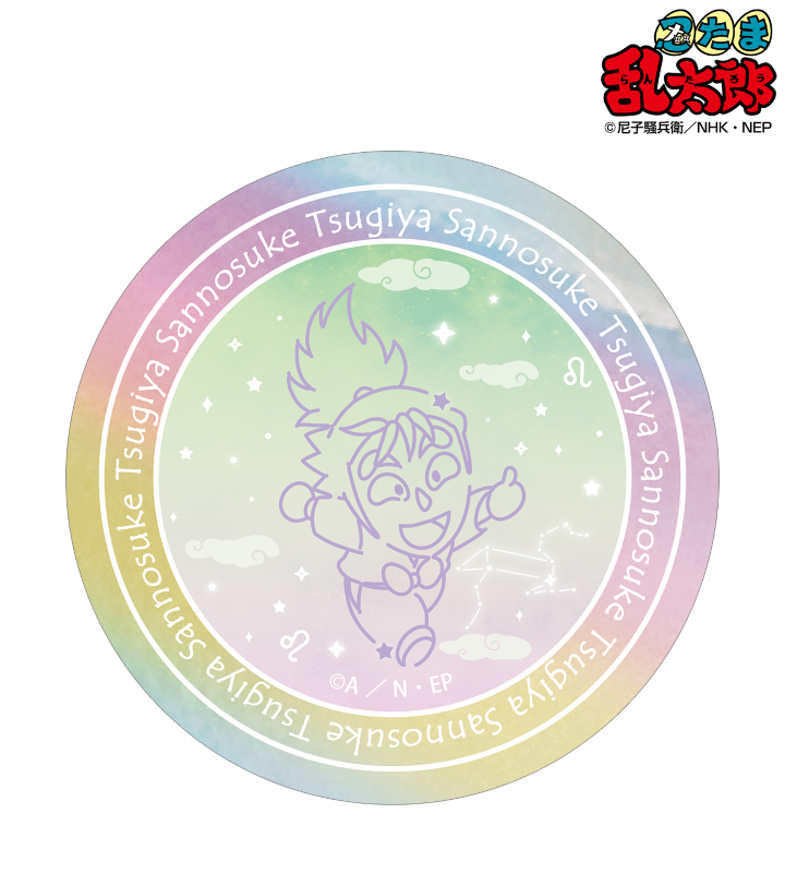次屋三之助のちびキャライラストと星座を組み合わせて、オーロラステッカーに仕上げました。