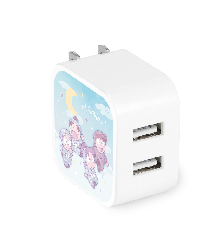 猪名寺乱太郎、摂津のきり丸、福富しんべヱ、土井半助のちびキャライラストと星座を組み合わせて、2ポートUSBアダプターに仕上げました。