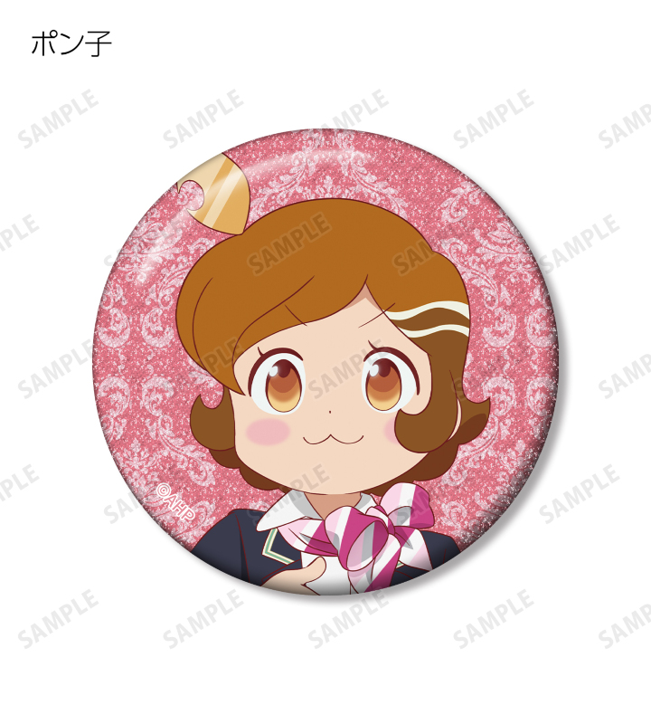 ヤチヨ、ポン子の描き下ろしイラストをグリッター加工を施した缶バッジ3個セットに仕上げました。