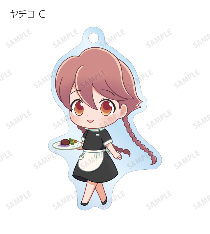 ヤチヨ、ポン子の描き起こしちびキャライラストをメインにデザインし、アクリルキーホルダーに仕上げました。