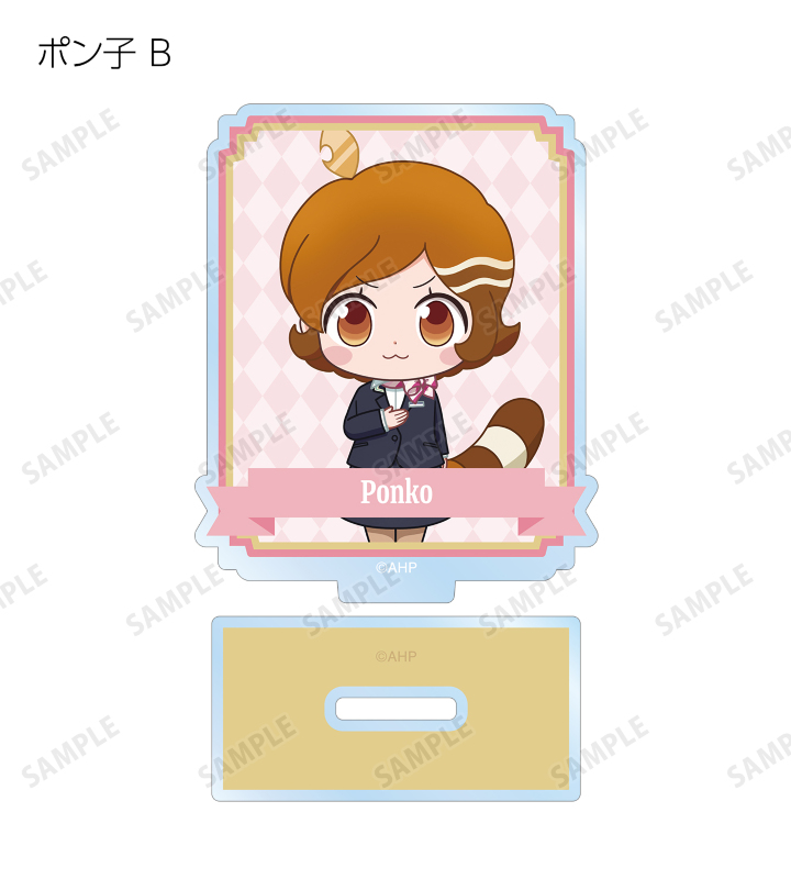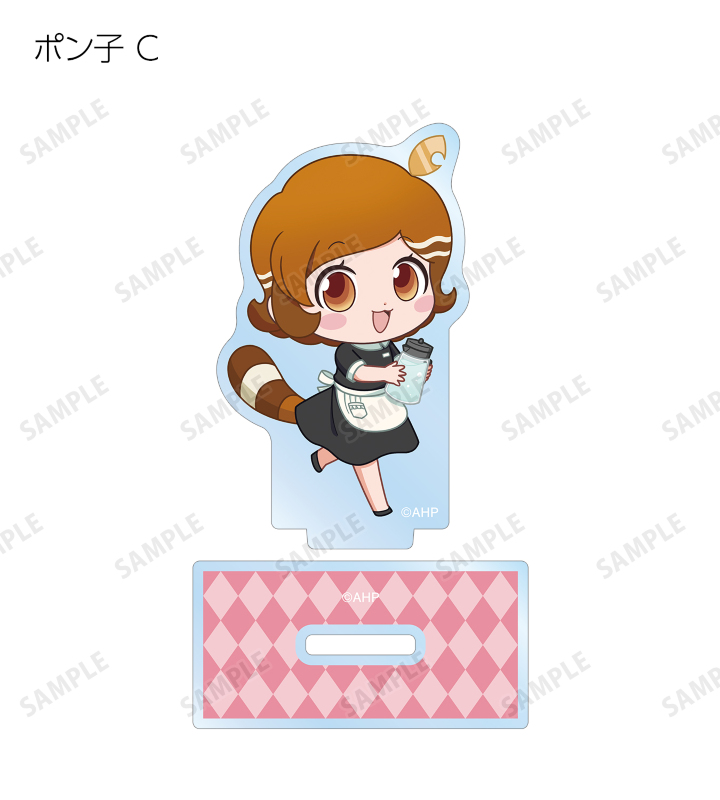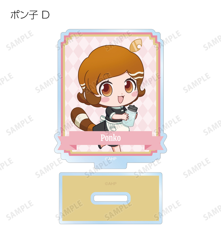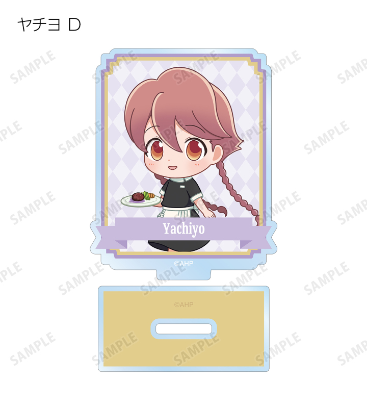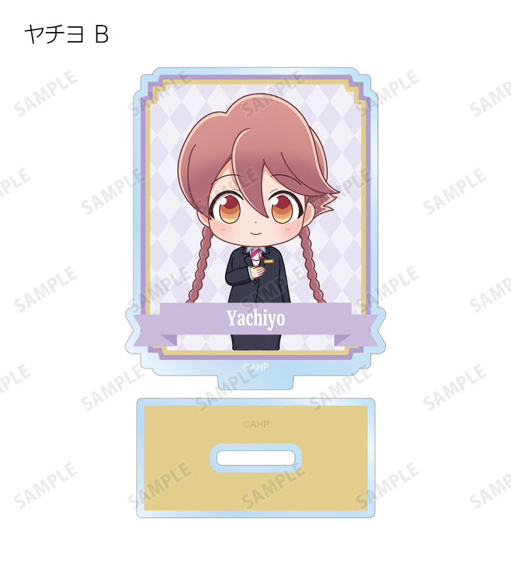 ヤチヨ、ポン子の描き起こしちびキャライラストをメインにデザインし、アクリルスタンドに仕上げました。