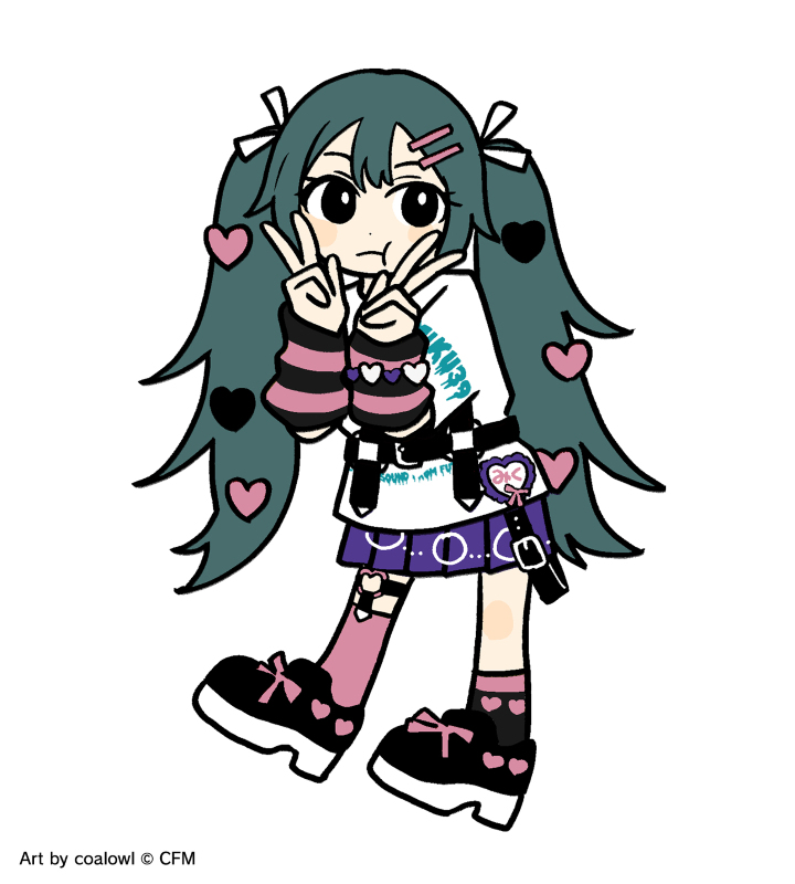 coalowlさん描き下ろしの初音ミクのイラストを、ちょこんと立っている立体的なぬいぐるみに仕上げました。