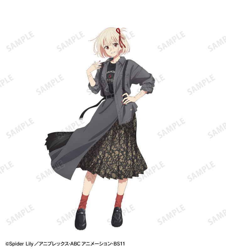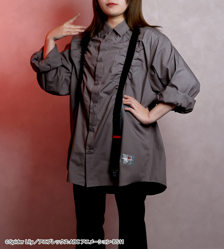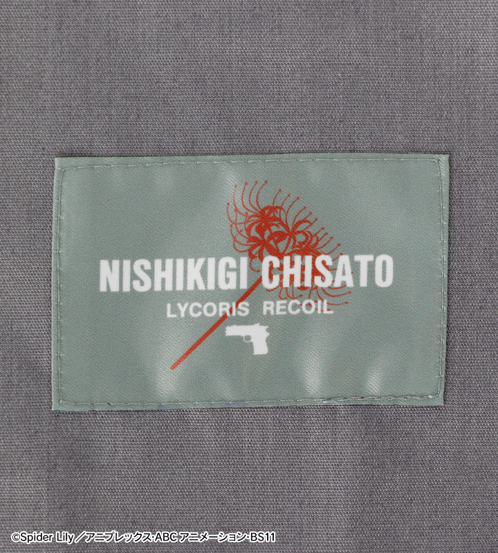 さらに、シャツの左下には赤い彼岸花と「錦木千束」の名前、作品タイトルを組み合わせたオリジナルのネームをあしらい、細部にまでこだわりをプラス。