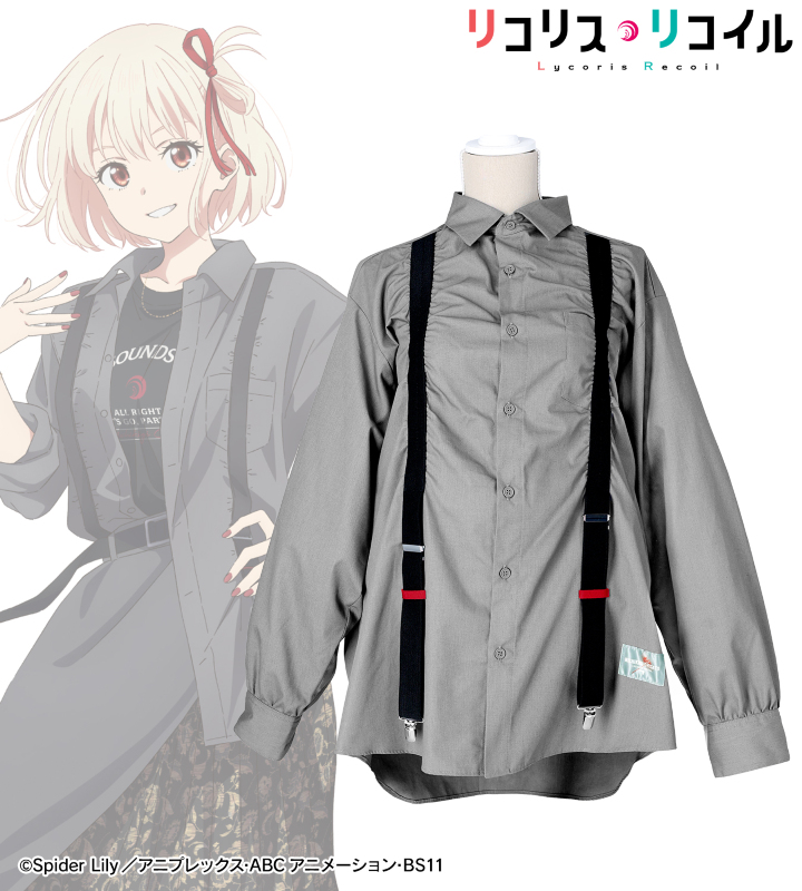 TVアニメ「リコリス・リコイル」×「meagratia」のコラボレーションアイテム「meagratiaコラボ 描き下ろし 錦木千束 着用 ロングスリーブシャツ/ユニセックス」の登場です。