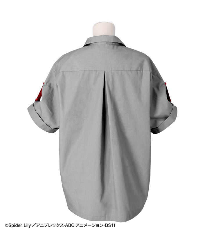 さらに、シャツの左下には赤い彼岸花と「錦木千束」の名前、作品タイトルを組み合わせたオリジナルのネームをあしらい、細部にまでこだわりをプラス。
