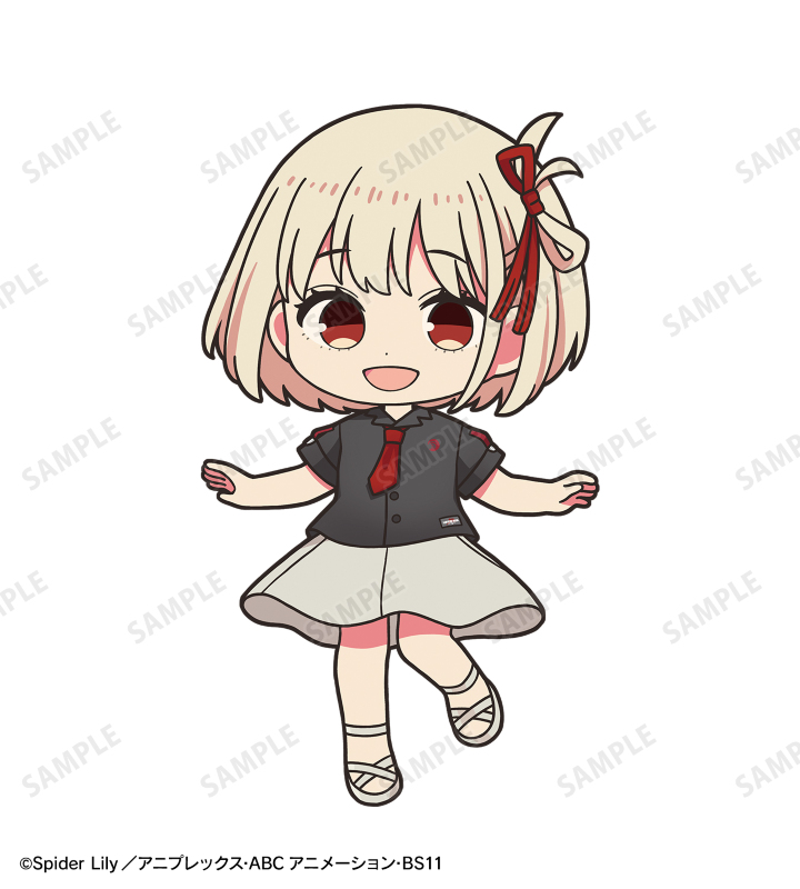 ちびキャラの錦木千束が着用している、大きめのボタンが特徴のハーフスリーブシャツです。