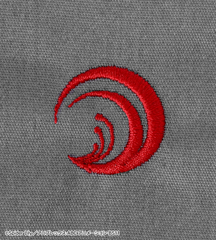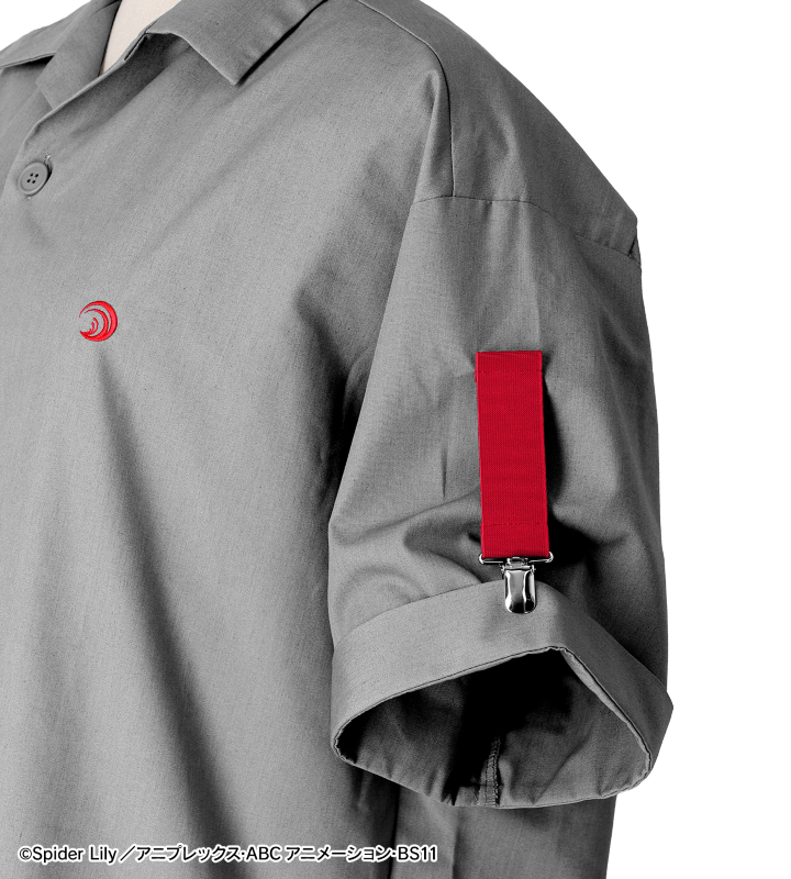 袖部分には、錦木千束をイメージしたカラーのアームクリップをアクセントとして取り付け、胸元にはリコリスの校章を刺繍で再現しました。
