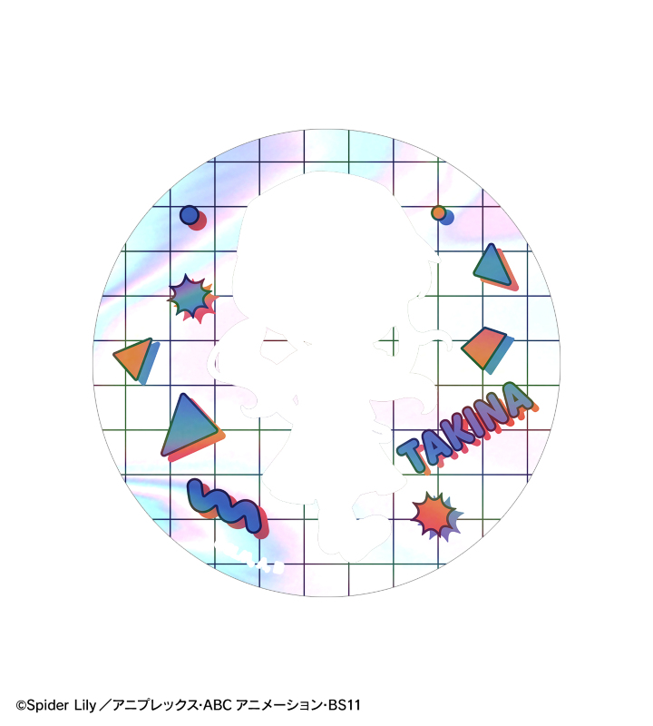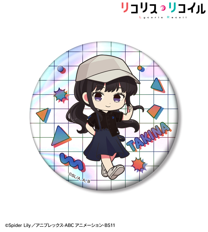 TVアニメ「リコリス・リコイル」×「meagratia」のコラボレーションアイテム「meagratiaコラボ 井ノ上たきな ちびキャラ 75mmオーロラ缶バッジ ver.B」の登場です。