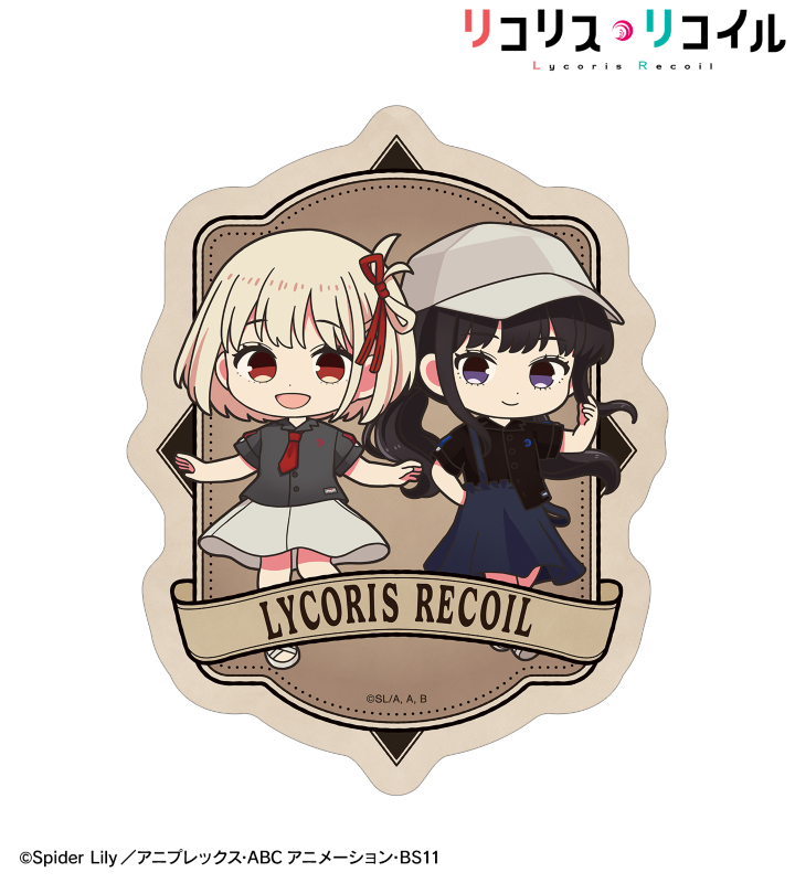 TVアニメ「リコリス・リコイル」×「meagratia」のコラボレーションアイテム「meagratiaコラボ 錦木千束&井ノ上たきな ちびキャラ ダイカットステッカー ver.B」の登場です。