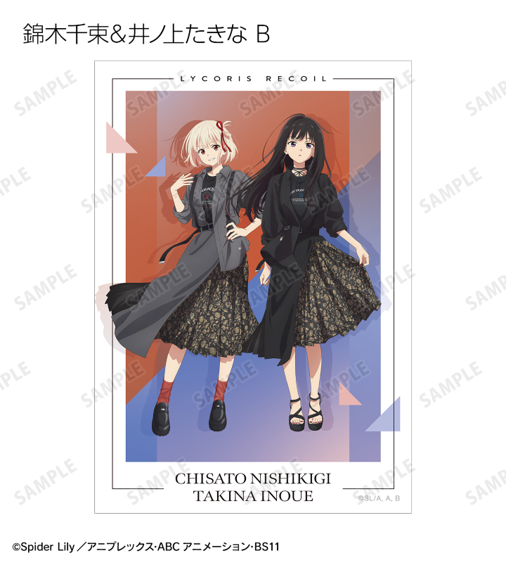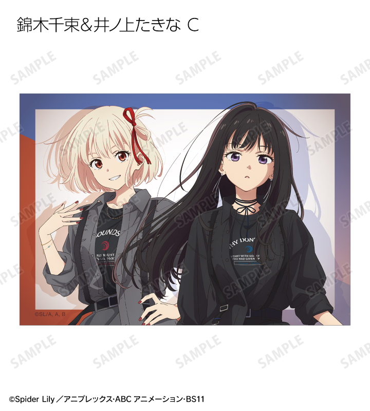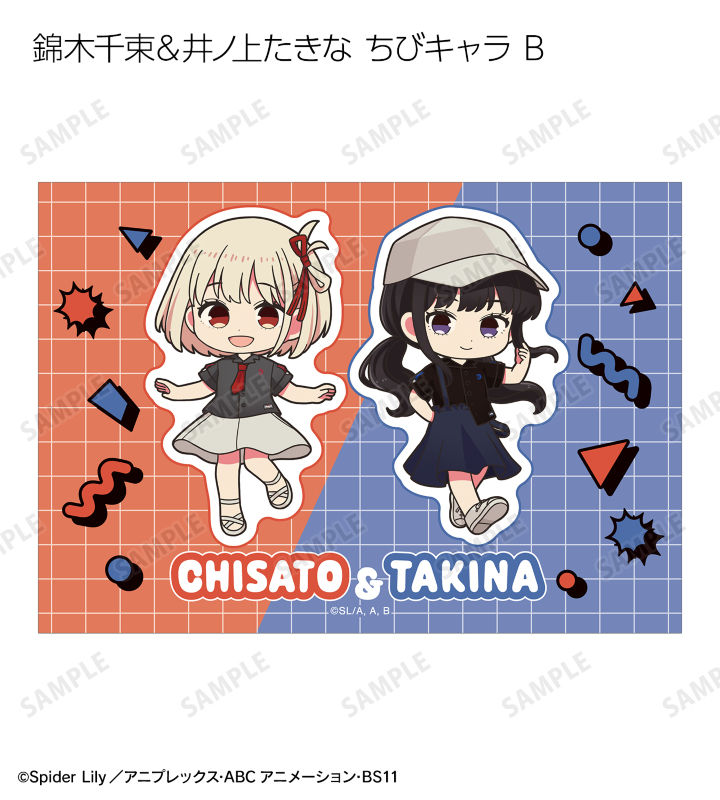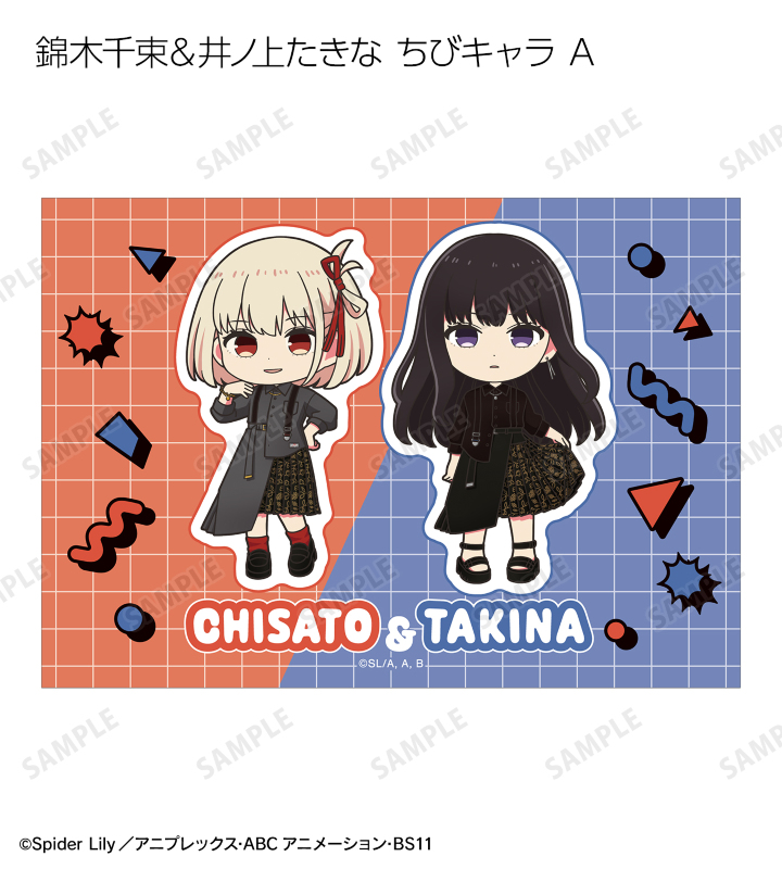 錦木千束、井ノ上たきなの描き下ろしイラスト、描き起こしちびキャライラストをブロマイドに仕上げました。 ※2025年10月8日までに
