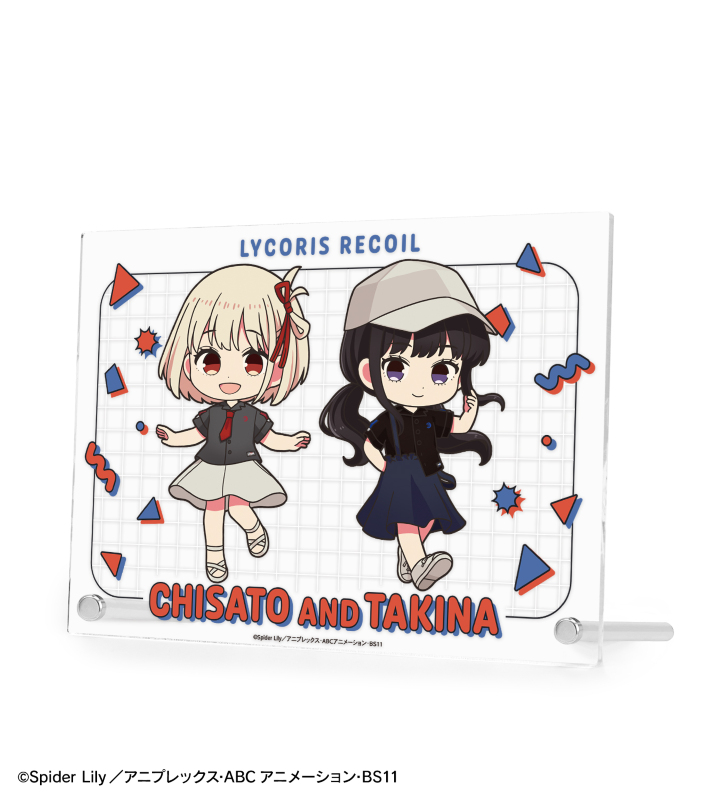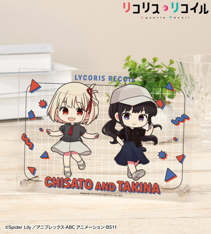 TVアニメ「リコリス・リコイル」×「meagratia」のコラボレーションアイテム「meagratiaコラボ 錦木千束&井ノ上たきな ちびキャラ A5アクリルパネル ver.B」の登場です。