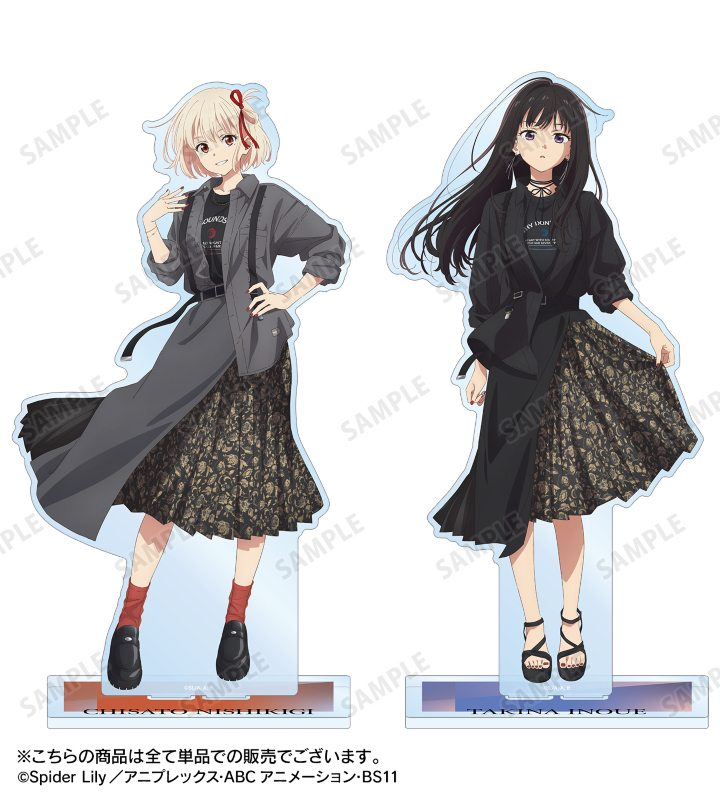 錦木千束の描き下ろしイラストを特大サイズのアクリルスタンドに仕上げました。