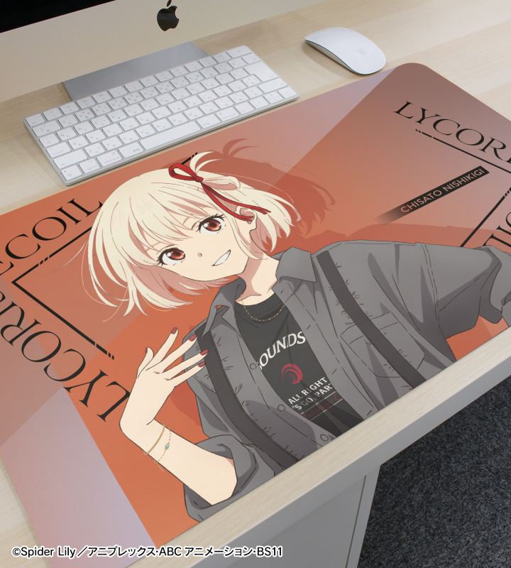 錦木千束の描き下ろしイラストをマルチデスクマットに仕上げました。