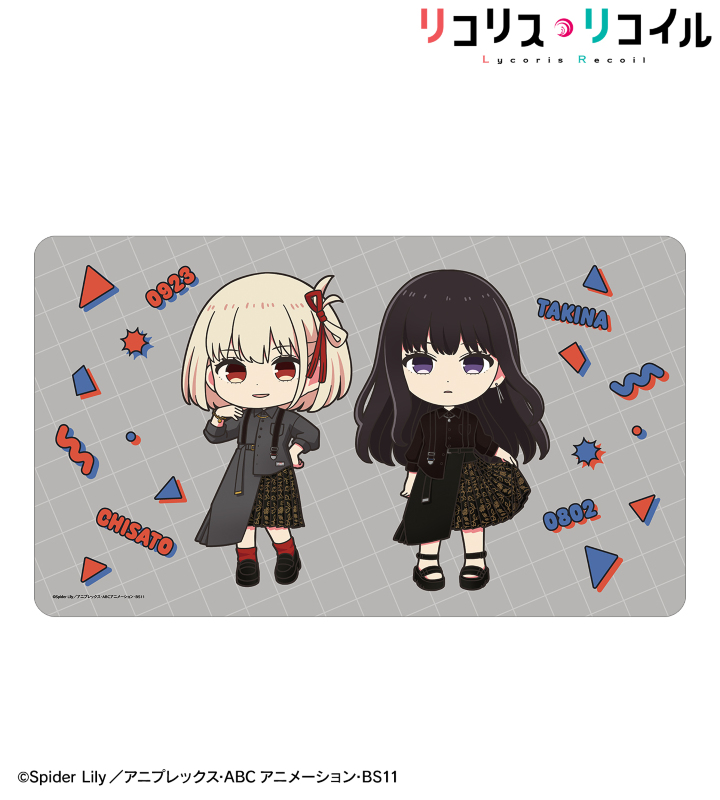 TVアニメ「リコリス・リコイル」×「meagratia」のコラボレーションアイテム「meagratiaコラボ 錦木千束&井ノ上たきな ちびキャラ マルチデスクマット ver.A」の登場です。