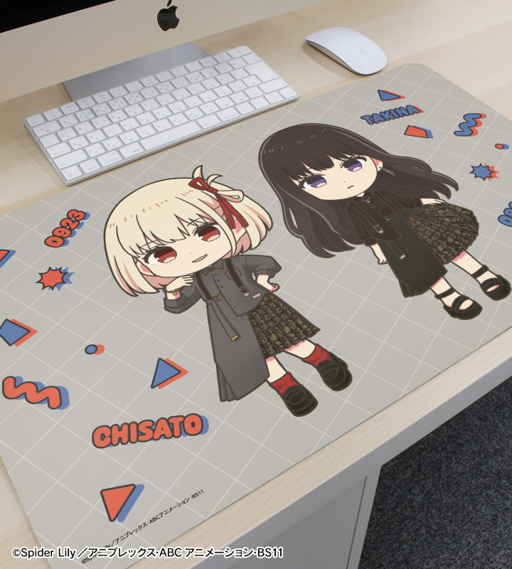錦木千束、井ノ上たきなの描き起こしちびキャライラストをマルチデスクマットに仕上げました。