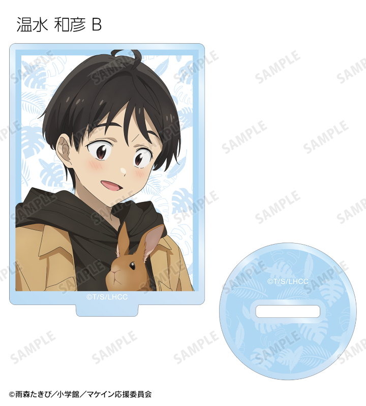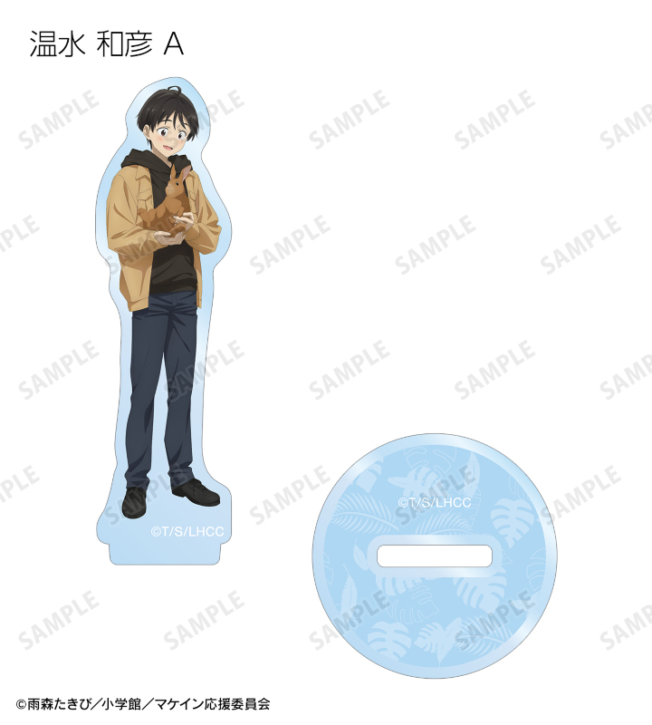温水 和彦、八奈見 杏菜、焼塩 檸檬、小鞠 知花、温水 佳樹の描き下ろしイラストをアクリルスタンドに仕上げました。