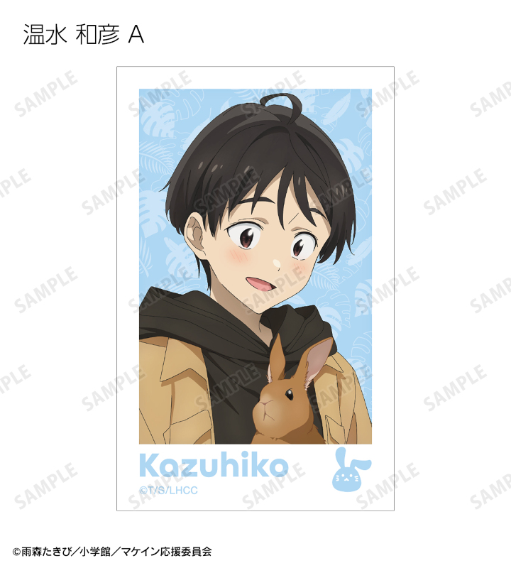温水 和彦、八奈見 杏菜、焼塩 檸檬、小鞠 知花、温水 佳樹の描き下ろしイラストをインスタントカメラ風のイラストカードに仕上げました。