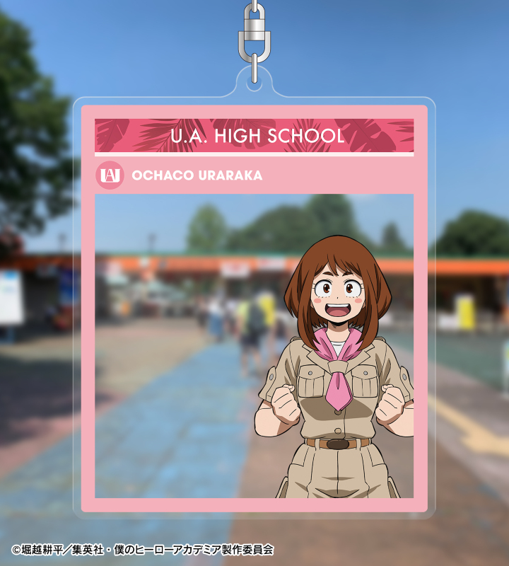 TVアニメ『僕のヒーローアカデミア』×「東武動物公園」のコラボレーションアイテム「描き下ろし 麗日お茶子 サファリルックver. フォトフレーム風BIGアクリルキーホルダー」の登場です。