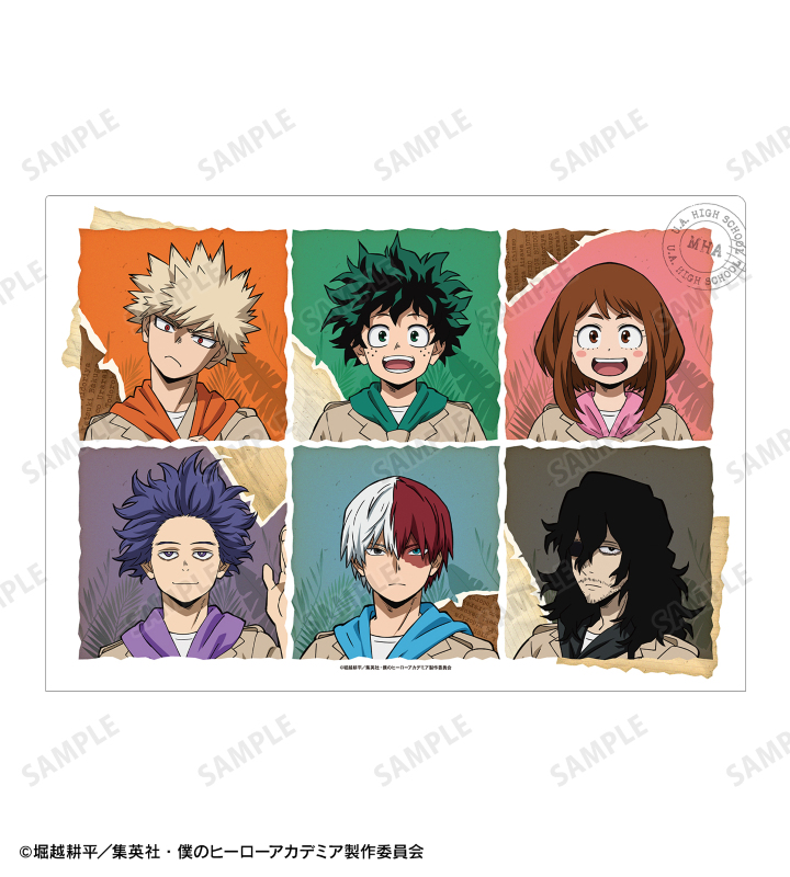 緑谷出久、爆豪勝己、麗日お茶子、轟焦凍、心操人使、相澤消太の描き下ろしビジュアルをメインにデザインし、クリアファイルに仕上げました。
