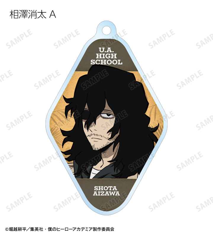 緑谷出久、爆豪勝己、麗日お茶子、轟焦凍、心操人使、相澤消太の描き下ろしビジュアルをアクリルキーホルダーに仕上げました。