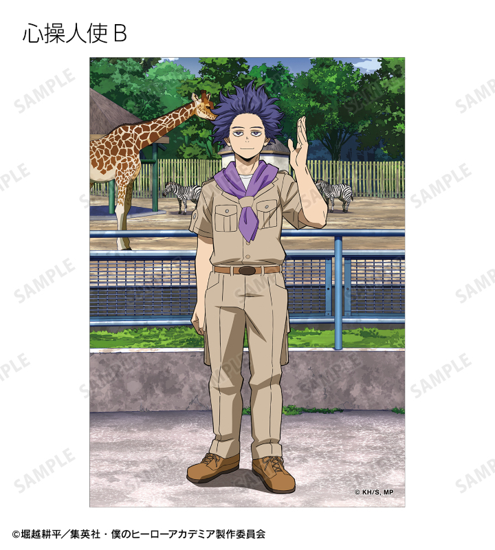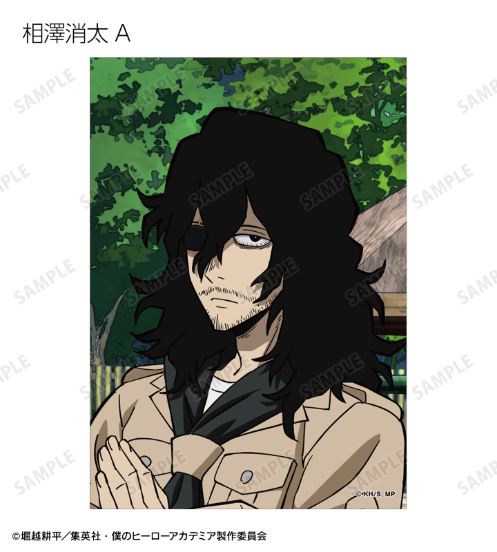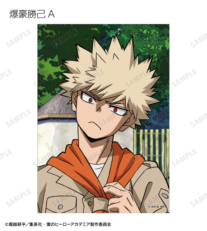 緑谷出久、爆豪勝己、麗日お茶子、轟焦凍、心操人使、相澤消太の描き下ろしビジュアルをブロマイドに仕上げました。