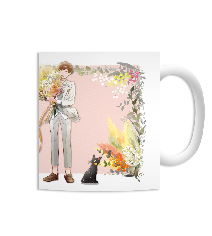 歌手・声優などでご活躍中の『少年T』とARMA BIANCAのコラボレーションアイテム「マグカップ」の登場です。 少年Tと愛猫のイラストをたくさんの花や「Syonen T」の文字と合わせたデザインに仕上げています。 少し大きめのマグカップで、飲み物をたっぷりと入れることができます。