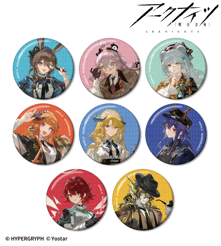 アーミヤ、メイ、イースチナ、バグパイプ、サイラッハ、チェン、エクシア、リーの描き起こしイラストをグリッター加工を施した缶バッジに仕上げました。 ※2026年02月12日までに