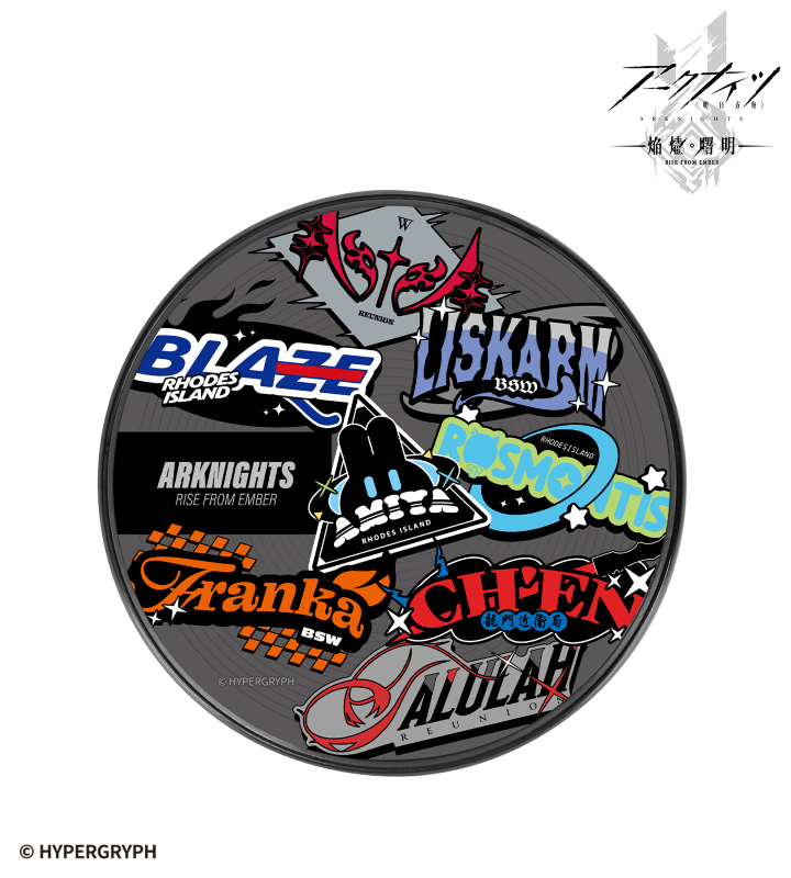 『アークナイツ【焔燼曙明/RISE FROM EMBER】』×「ROUND1」のコラボレーションアイテム「ステッカー風モチーフ サークル型Qi対応ワイヤレス充電器」の登場です。